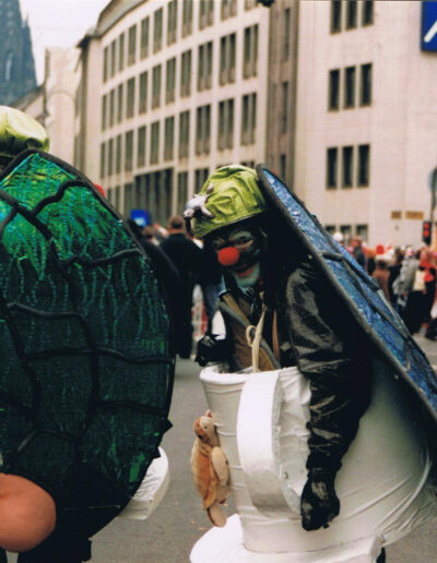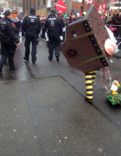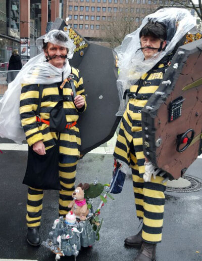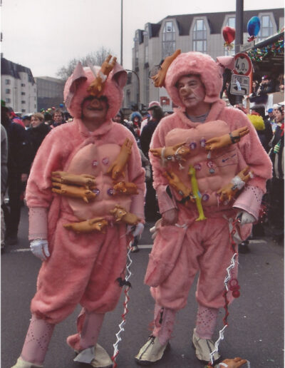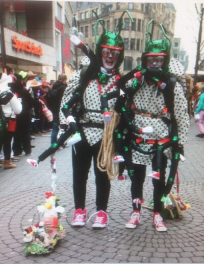 Was sich hieraus in über 30 Kostümen langsam, sozusagen schleichend, ergeben hat könnt Ihr auf dieser Webseite erkunden. Alle Kostüme sind selbst gefertigt. Vielleicht hab Ihr uns mit einem der Kostüme auf einem Ball oder vor dem Rosenmontagszug gesehen.