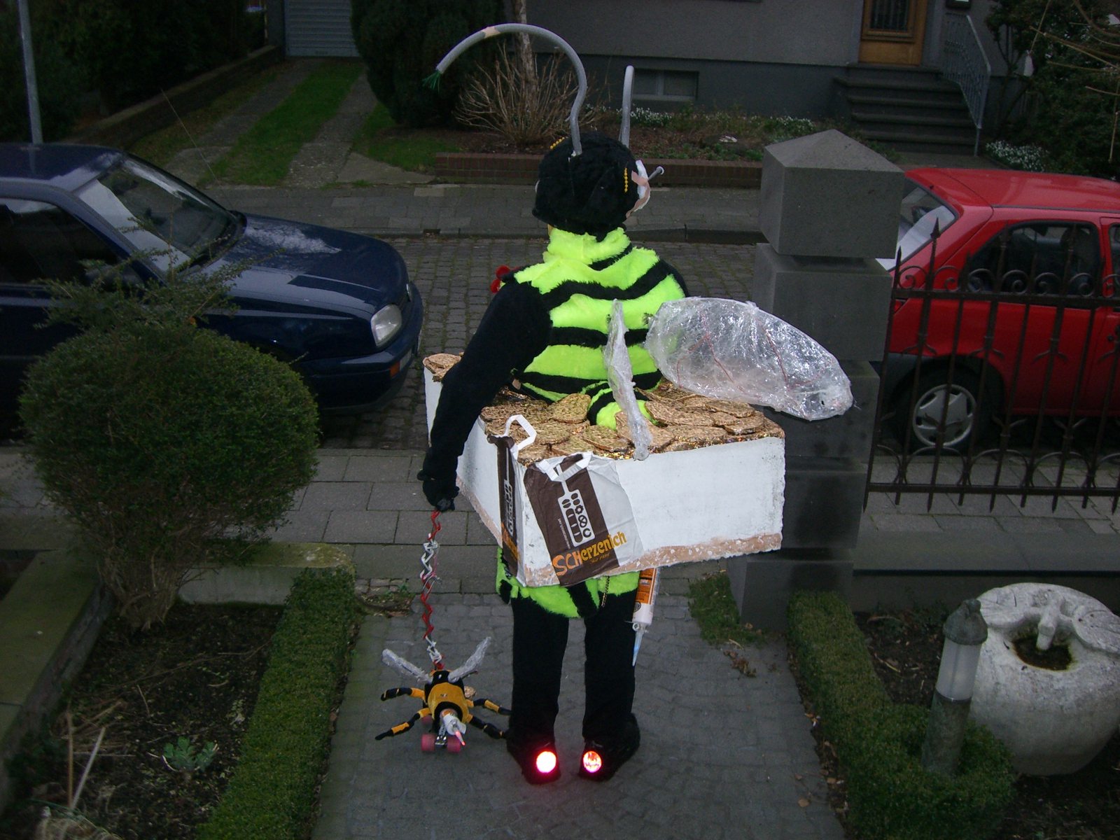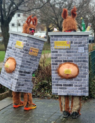 Matrose, Pirat etc. schlossen wir als ungeeignet aus. Die obligatorische rote Nase wollte zu dem nicht passen. Mehr Spannung versprachen Toilettenpapierrollen für den „Ersten Versuch“, mehr Abwechslung in die Welt der Kostüme zubringen.